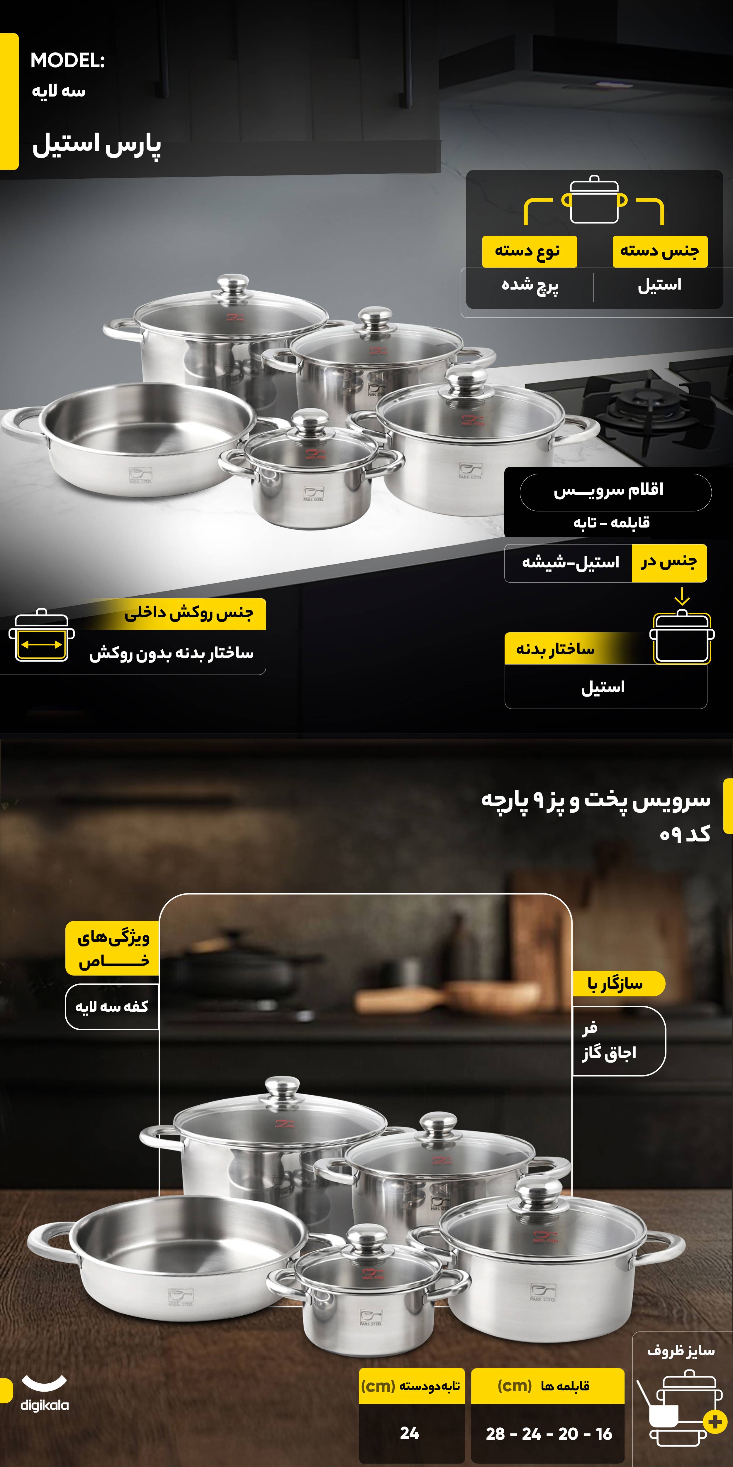 سرویس پخت و پز 9 پارچه پارس استیل مدل سه لایه کد 09