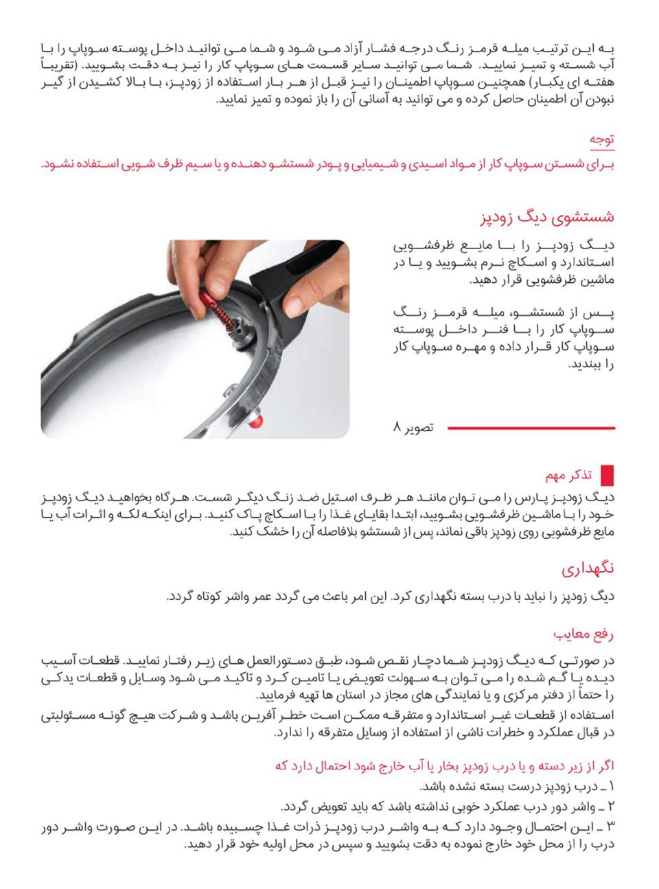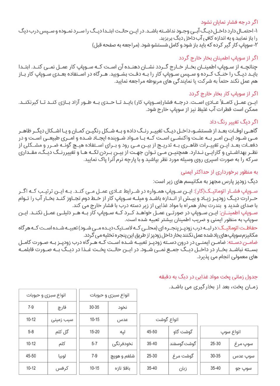 امروزه با استفاده از دیگهای زودپز، با سرعت بیشتری میتوان انواع خورشها را پخت. از زودپز میتوان برای پخت سریع انواع گوشت نیز استفاده کرد. یکی از نمونههای خوب زودپزها، میتوان به مدل چهارونیم لیتری با درب پیرکس «پارس استیل» (Pars Steele) اشاره کرد. این زودپز تماما از استیل ضد زنگ ساخته شده و دارای یک در استیل و یک در پیرکس است. وجود در پیرکس سوپاپدار کمک میکند تا بتوان از زودپز به عنوان قابلمهی معمولی هم استفاده کرد و هم پس از پخت مثلا یک نوع خورش، برای جا افتادن آن، درب ...بیشترایمنی 4 کارایی 4 طراحی 3 ارزش خرید 4 کیفیت ساخت 4