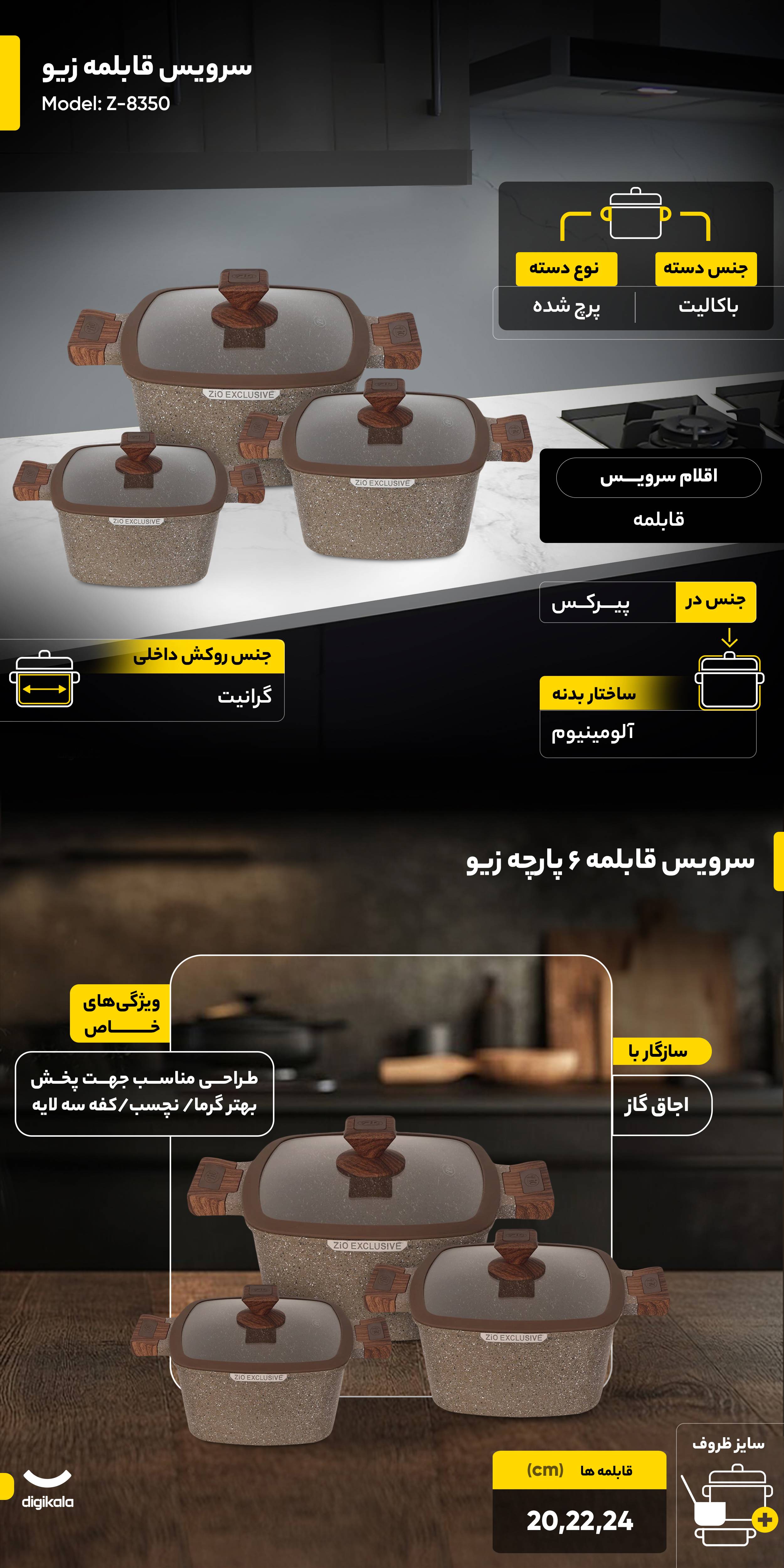 سرویس قابلمه 6 پارچه زیو مدل Z-8350، یک مجموعه ضروری و باکیفیت از کشور ترکیه است که برای پخت و پز آسان و لذتبخش روزمره طراحی شده است. ساختار بدنه این قابلمهها از آلومینیوم با کفه سه لایه است که حرارت را به سرعت و به طور یکنواخت در تمام سطح ظرف پخش میکند. روکش داخلی از جنس گرانیت درجه یک و سنگی، علاوه بر ایجاد سطحی کاملاً نچسب برای آشپزی سالم، مقاومت و دوام بالایی را نیز تضمین میکند.